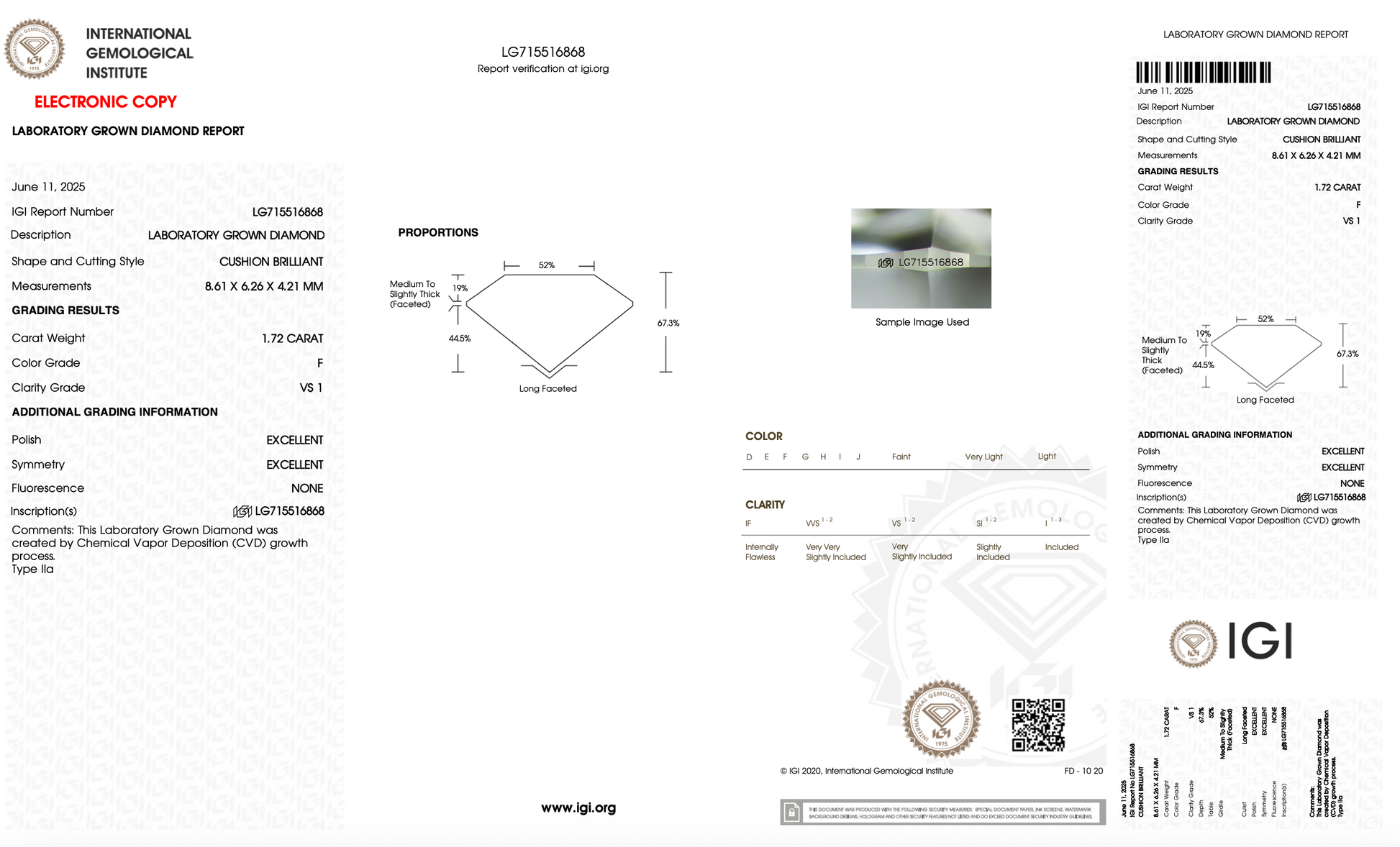 1.72ct F VS1 IGI Certified Old Mine Cut Cushion Lab Diamond