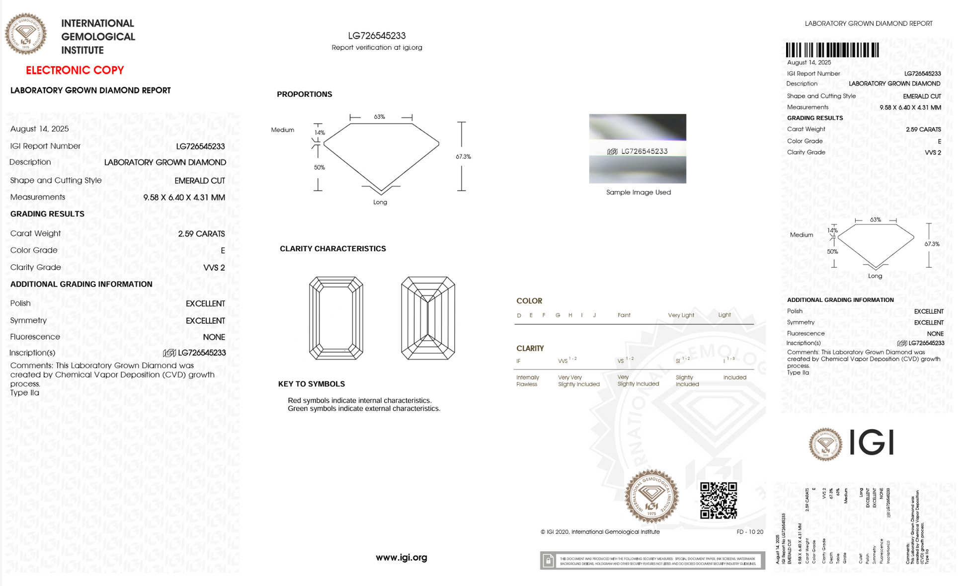 2.59ct E VVS2 IGI Certified Emerald Cut Lab Diamond