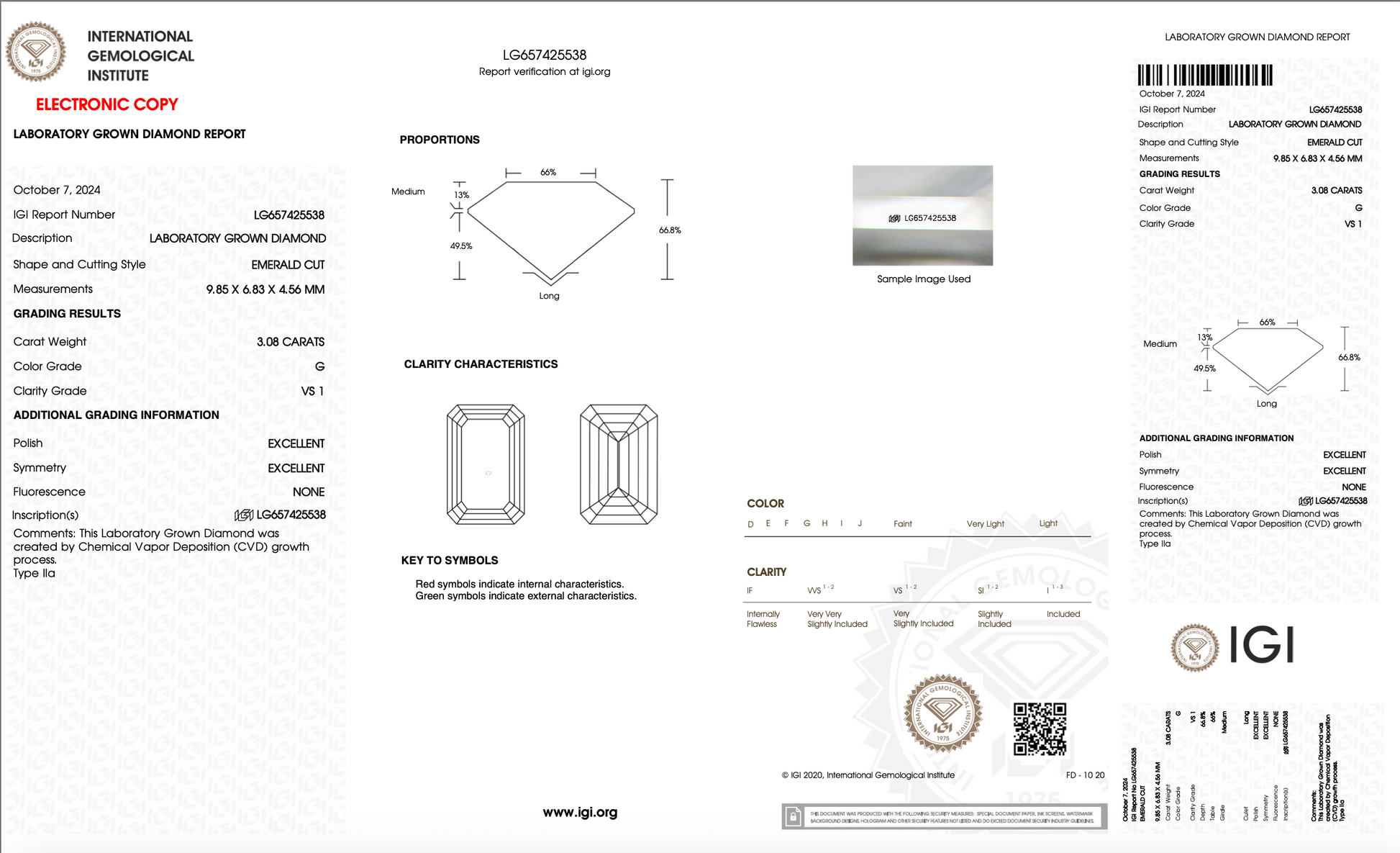 3.08ct G VS1 IGI Certified Emerald Cut Lab Diamond