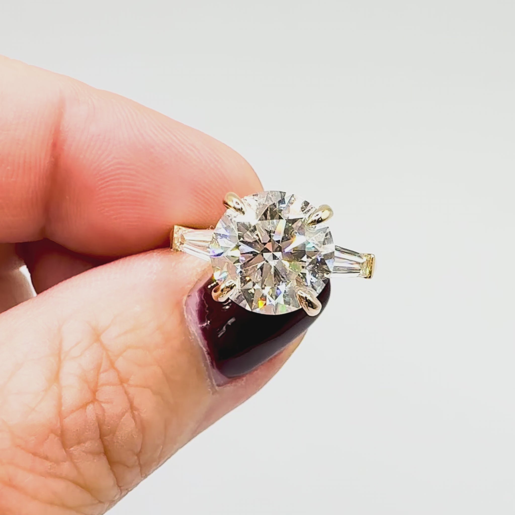4ct Round Brilliant Diamond Ring with Tapered Baguettes