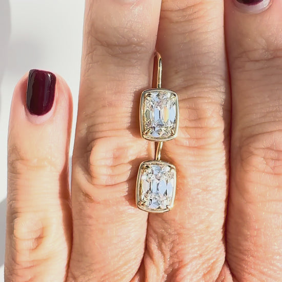 Heirloom Drops, 4.22ctw Antique Cut Cushion Earrings in 14K Yellow Gold