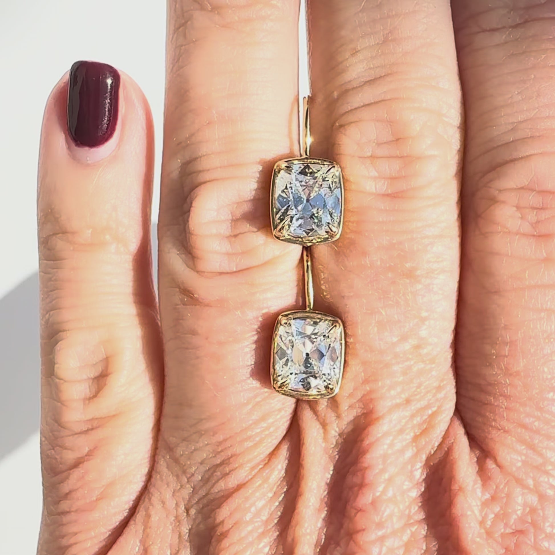 Heirloom Drops, 4.29ctw Antique Cut Cushion Earrings in 14K Yellow Gold