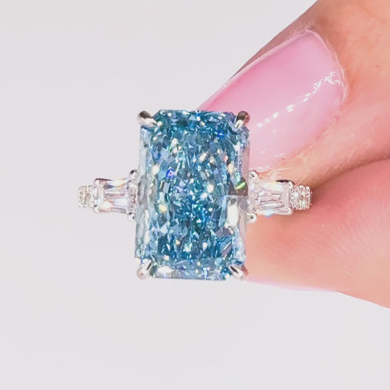 The Cinderella 5ct Fancy Blue Radiant Ring in 14K White Gold