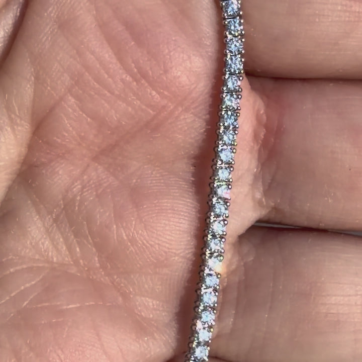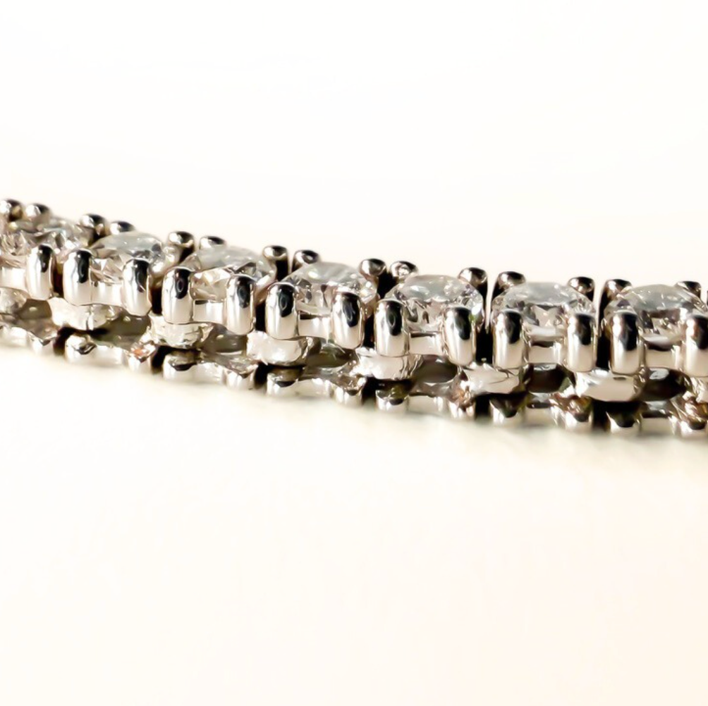 Six carats of seamless sparkle, served ice cold. This 17” tennis necklace features round brilliant lab diamonds set in solid 14K gold (white or yellow), with a weighty, silky drape and a fold-under safety clasp that actually stays flat. No flipping. No fuss. Just clean, classic brilliance with enough heft to hold its own — layered or solo. Not a coincidence that the only sport I play is tennis.