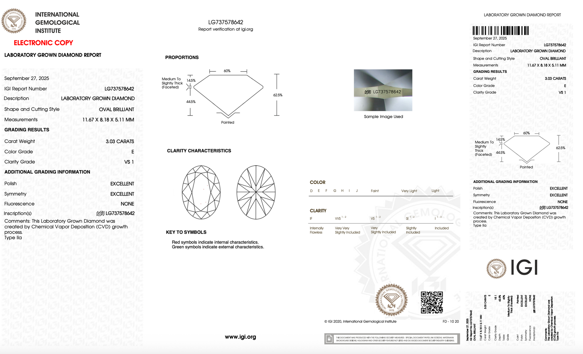 The Partridge Trio features an IGI certified brilliant cut 3.03ct E VS1 oval lab diamond at center, framed by perfectly proportioned pear-shaped side stones and set atop a slim, pave-adorned 14K yellow gold band. With a total carat weight of 4.28ctw, this ring delivers maximum presence from every angle while maintaining a clean, timeless feel.