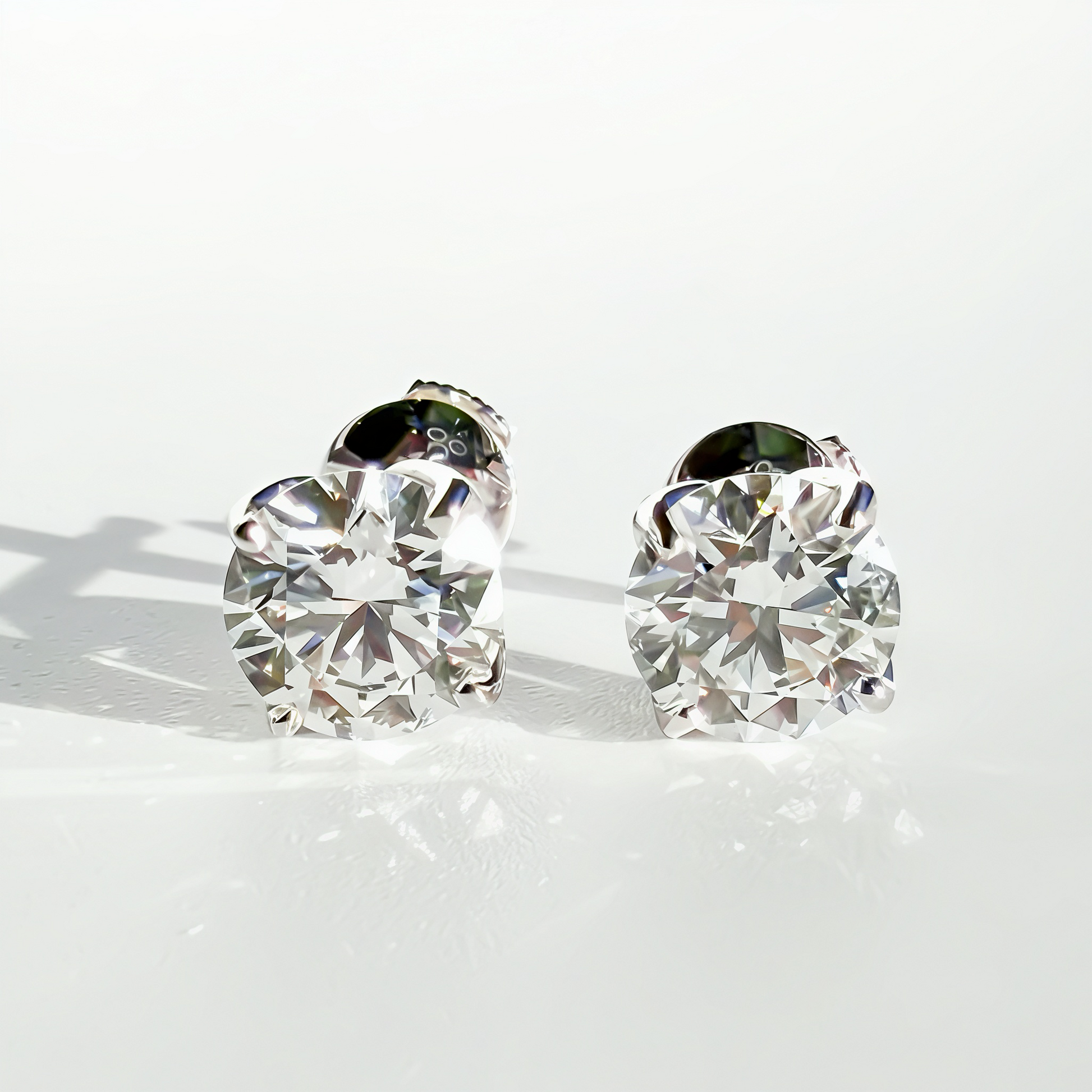 5ct Round Brilliant Diamond Stud Earrings (E VVS2, IGI Certified)